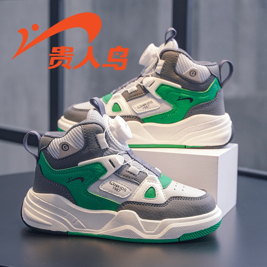 Guirenniao Children’s Shoes 2025 Autumn Boys’ Versatile Casual High-top Non-slip Girls’ Shoes, Mid-to-large Kids’ Sports Skate Shoes